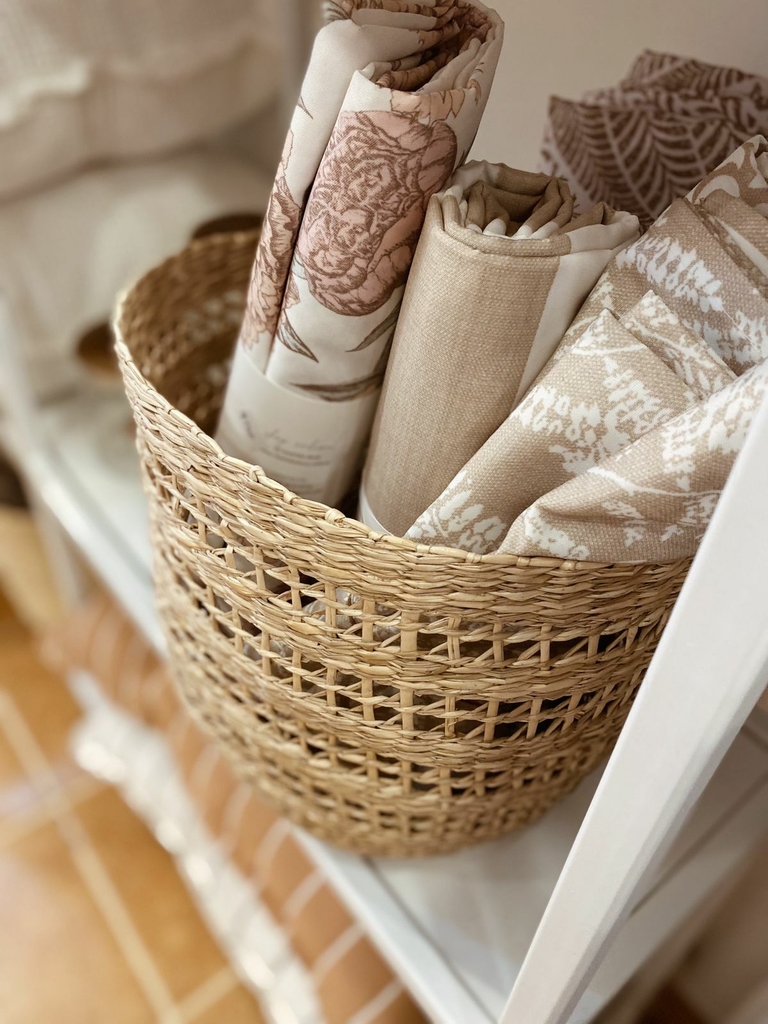 Canasto cilindrico realizada en fibras naturales, en tres medidas S 20cm / M 25cm / L 30cm.