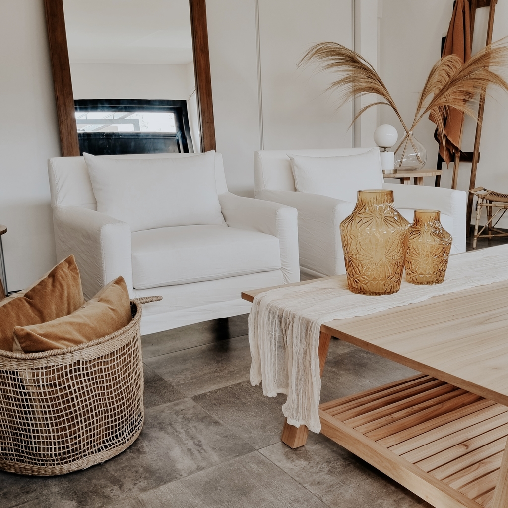 Sillón de un cuerpo, tapizado en Lienzo con funda en tusor. Medidas: 82cm Ancho x 80cm Alto Se puede realizar con tapizado y funda a elección.